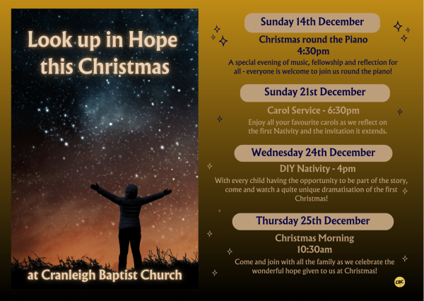 We are a welcoming and friendly church in the heart of Cranleigh. Our aim is to love God, love one another, and serve the community, reaching out with a message of good news.